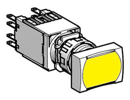 This is XB6 Yellow LED Indicator 16mm Cutout IP65 120 V ac 15 mA manufactured by Schneider Electric. The manufacturer part number is XB6DV5GB. The product has a current rating of 15 ma. The product is available in panel mount configuration. It is IP rated with ip65. Its pilot light is of yellow colour . The product xb6, is a highly preferred choice for users. Moreover, the product has a nominal 120 v ac voltage rating. The terminal is a quick connect type. The product's body is nicely designed from plastic materials. Whereas its cut-out diameter is 16mm. It is a type of led lamp.