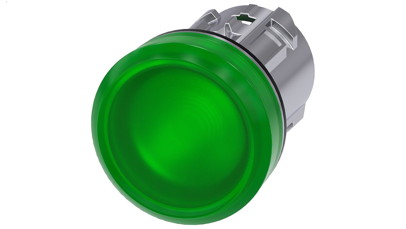This is SIRIUS ACT Series Green Pilot Light Head 22mm Cutout manufactured by Siemens. The manufacturer part number is 3SU1051-6AA40-0AA0. Is it a better world product? yes. The product is available in panel mount configuration. It is IP rated with ip66, ip67, ip69(ip69k). Its pilot light is of green colour . The product sirius act 3su10, is a highly preferred choice for users. Its pilot light is made using metal material . Whereas its cut-out diameter is 22mm. It is designed with an attractive round shape pilot light .