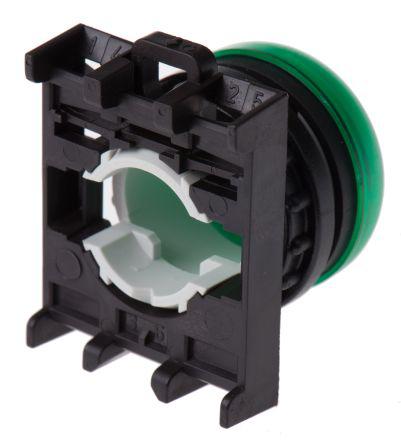 This is Green Pilot Light Head 22.5mm Cutout M22 Series manufactured by Eaton. The manufacturer part number is 78635860 | M22-L-G+M22-A. The product is available in flush mount, rear, surface mount configuration. It is IP rated with ip69k. Its pilot light is of green colour . The product m22, is a highly preferred choice for users. Its pilot light is made using plastic material . Whereas its cut-out diameter is 22.5mm. It is designed with an attractive round shape pilot light .