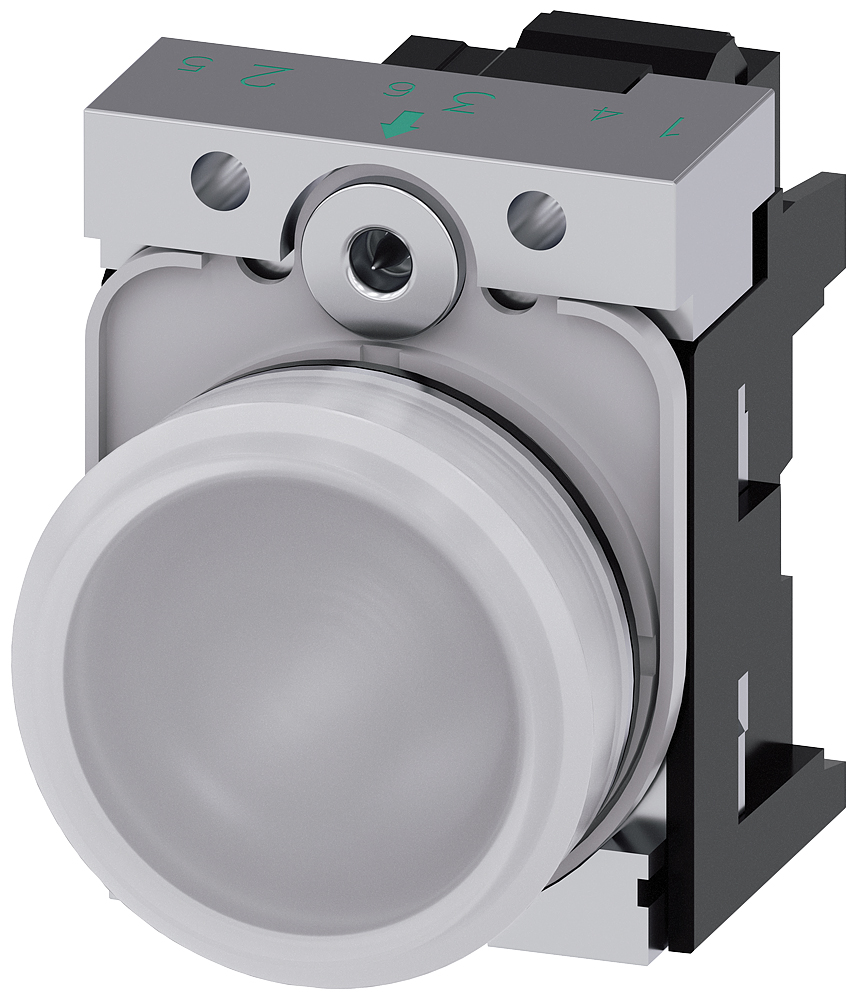This is SIRIUS ACT front panel mounting White LED Indicator 22.3mm Cutout IP66 IP67 IP69(IP69K) Round manufactured by Siemens. The manufacturer part number is 3SU1156-6AA60-3AA0. Is it a better world product? yes. The product is available in panel mount configuration. Moreover, the product has a nominal 230v ac voltage rating. Its pilot light is of white colour . The product sirius act, is a highly preferred choice for users. It has a pilot light complete unit type pilot type . Its pilot light is made using plastic material . The product's body is nicely designed from metal materials. Whereas its cut-out diameter is 22mm. It is a type of led lamp. It is designed with an attractive round shape pilot light .