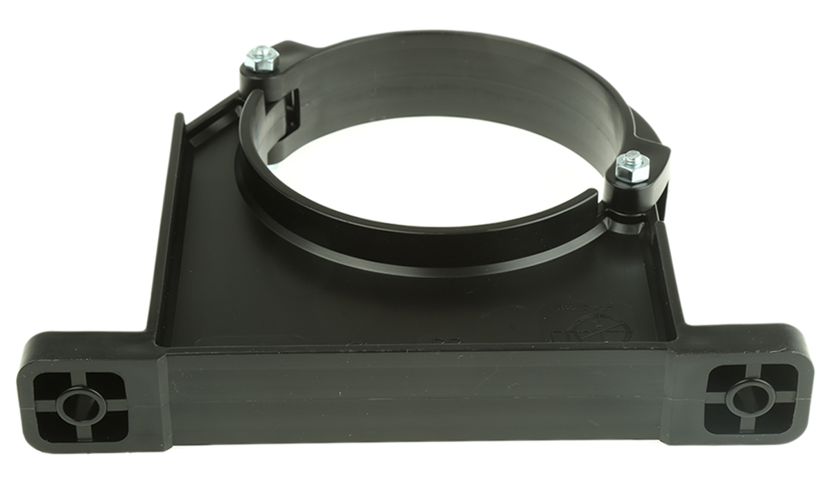 This is 4in Outside Diameter PP Black Pipe Clip 120mm 9mm manufactured by Georg Fischer. The manufacturer part number is 167060064. It has a decent black colour. The product is made from highly stable and reliable pp. In addition, the height is 120mm. The diameter of the fixing hole is 9mm.