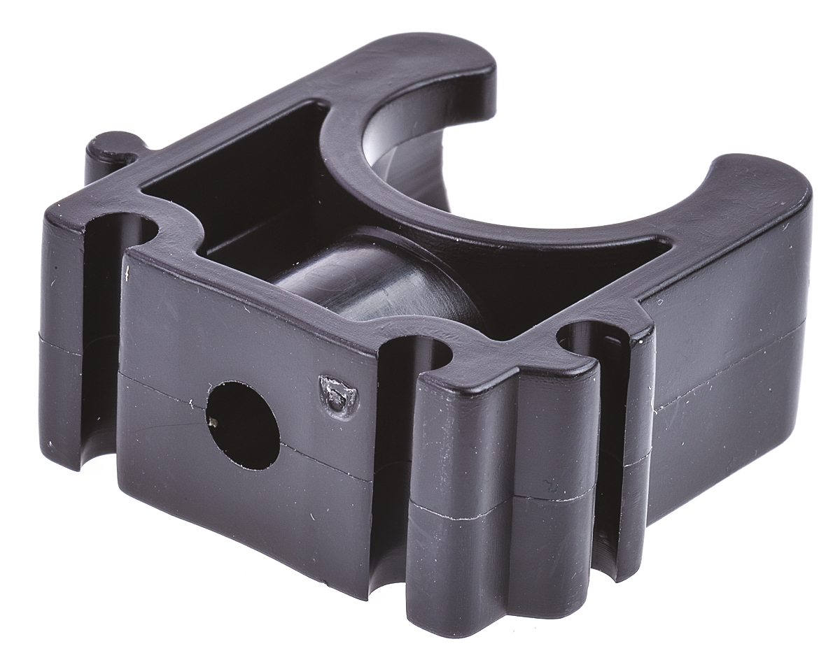 This is PP Black Pipe Clamp 0.63in x 1.42in x 1.06in 0.24in manufactured by Georg Fischer. The manufacturer part number is 167061036. The diameter of the fixing hole is 0.24in. It has a decent black colour. The product is made from highly stable and reliable pp. In addition, the height is 1.06in. Moreover, its pipe diameter is approximately 20mm . Furthermore, the product is 1.42in wide. It is 0.63in thick. It comes in pipe bracket configuration.