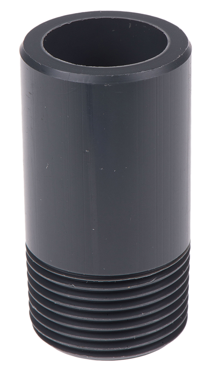 This is PVC-U Nipple 1 in R Male x 1 in Cement Male manufactured by Georg Fischer. The manufacturer part number is 721913908. The product is made from highly stable and reliable pvc-u. The fitting direction is straight . The threaded is a r standard. This nipple tool is easy to use with versatile applications in various settings. It has a standard 1in thread size 2 . It has a typical thread size of 1in. Additionally, its pipe fitting connection is of threaded type . Its accurate length is 63mm. Moreover, its thread is of cement standard 2 .