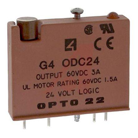 This is G4 PLC I/O Module 3 A 5 → 60 V dc 48.8 x 12.2 x 41.1 mm manufactured by Opto 22. The manufacturer part number is G4ODC24. The given dimensions of the product include 48.8 x 12.2 x 41.1 mm. The product is available in pcb mount configuration. The product axl f bk sas, is a highly preferred choice for users. It is a type of plc i/o module accessory. Furthermore, it has adigital dc voltage output. Applications Information involves dc relays, indicators, lamps, motor starters, solenoids. Features 24 v dc supply voltage. It carries dc digital input type. It has a maximum operating temperature of +70°c. It carries 3 a output current.