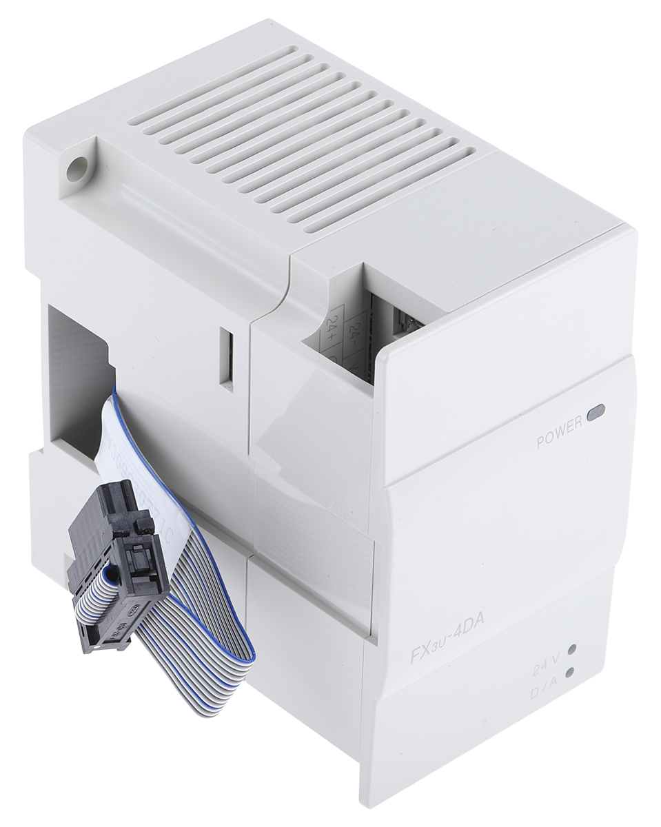 This is MELSEC FX PLC I/O Module 4 Outputs 0 → 20 mA 5 V dc 24 V dc 90 x 55 x 87 mm manufactured by Mitsubishi. The manufacturer part number is FX3U-4DA. Additionally, the product is supplied with 4 outputs. The given dimensions of the product include 90 x 55 x 87 mm. It carries 0 → 20 ma output current. It is a type of plc i/o module accessory. Furthermore, it has aanalogue output. The product is highly suitable for melsec fx series. It has a maximum operating temperature of +55°c.