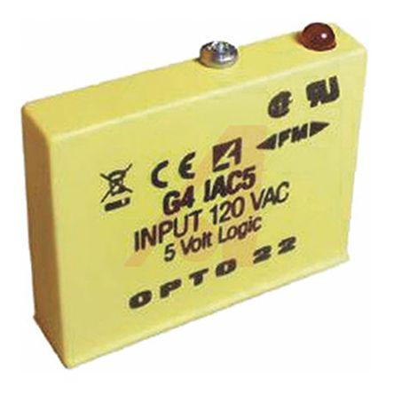 This is G4 PLC I/O Module 50 (Sinking) mA 90 → 140 V ac/dc 48.8 x 12.2 x 41.1 mm manufactured by Opto 22. The manufacturer part number is G4IAC5. The given dimensions of the product include 48.8 x 12.2 x 41.1 mm. The product is available in pcb mount configuration. The product power, is a highly preferred choice for users. It is a type of plc i/o module accessory. Furthermore, it has adigital output. Applications Information involves float switches, limit switches, proximity switches, push button, selector switches, thermostat, toggle switches. Features 5 v dc supply voltage. It carries digital ac voltage input type. It has a maximum operating temperature of +70°c. It carries 50 (sinking) ma output current.