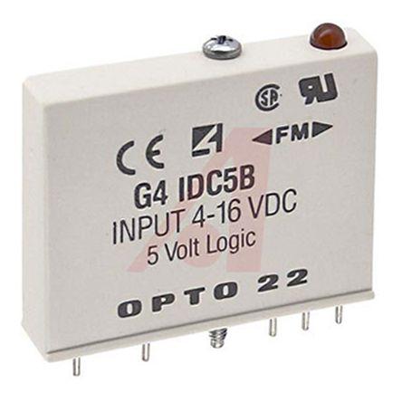 This is G4 PLC I/O Module 50 (Sinking) mA 4 → 16 V ac/dc 48.8 x 12.2 x 41.1 mm manufactured by Opto 22. The manufacturer part number is G4IDC5B. The given dimensions of the product include 48.8 x 12.2 x 41.1 mm. The product is available in pcb mount configuration. The product power solid state relay unit, is a highly preferred choice for users. It is a type of plc i/o module accessory. Furthermore, it has adigital output. Applications Information involves limit switches, photoelectronic switches, proximity switches, push button, selector switches, ttl-compatible devices. Features 5 v dc supply voltage. It carries digital dc voltage input type. It has a maximum operating temperature of +70°c. It carries 50 (sinking) ma output current.