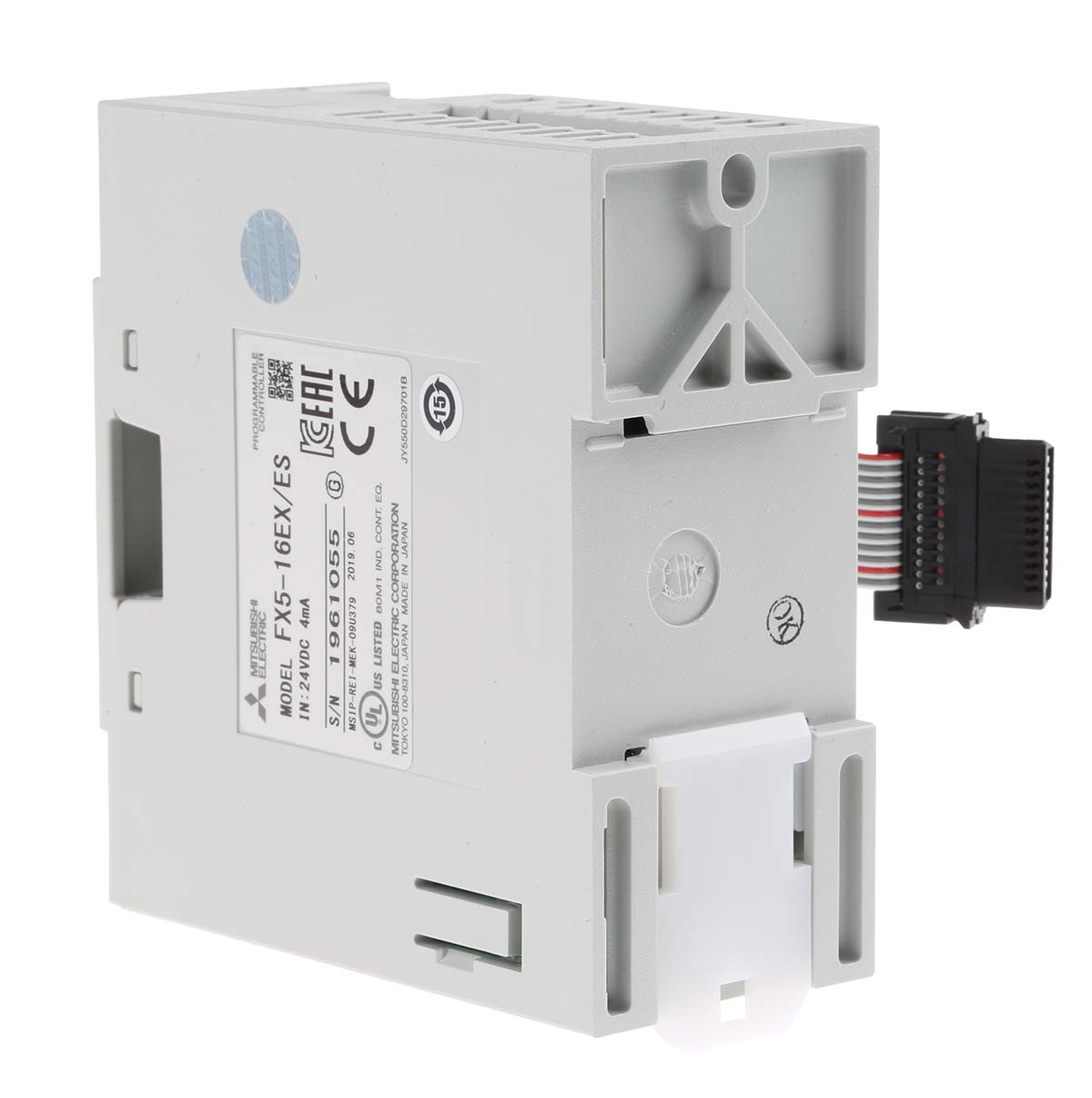 This is FX5 PLC I/O Module 16 Inputs 40 x 90 x 83 mm manufactured by Mitsubishi. The manufacturer part number is FX5-16EX/ES. The given dimensions of the product include 40 x 90 x 83 mm. The product is available in panel mount configuration. The product g4, is a highly preferred choice for users. It is a type of plc i/o module accessory. Features 5 v dc, 24 v dc supply voltage. It carries sink, source input type. The product is highly suitable for fx5u cpu module, fx5uc cpu module. The product consists of 16 inputs.