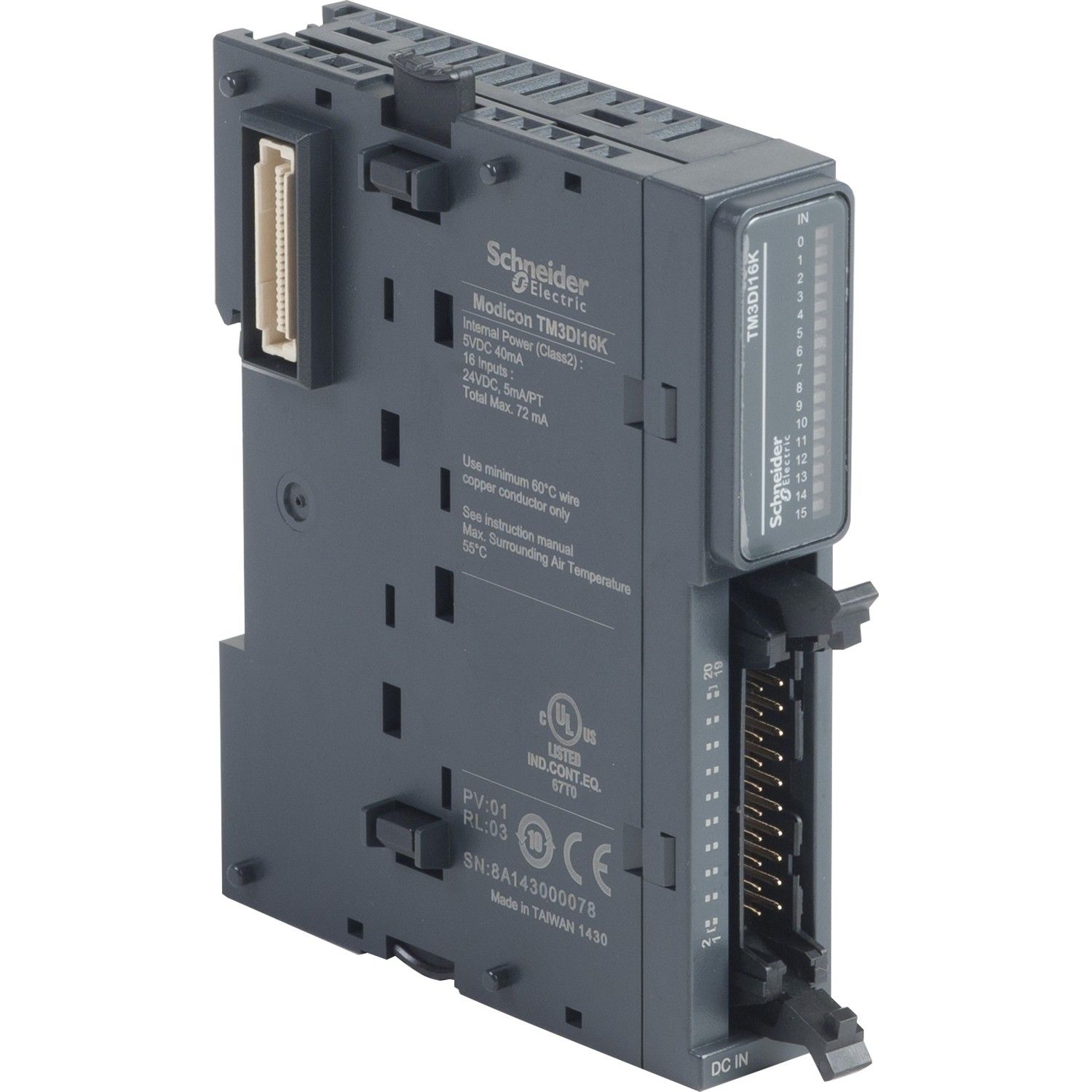 This is TM3 Series PLC I/O Module 16 Inputs 24 V 90 x 17.6 x 70 mm manufactured by Schneider Electric. The manufacturer part number is TM3DI16K. The product tm3d, is a highly preferred choice for users. It is a type of discrete input module accessory. It features modicon tm3 range. It carries analogue input type. The product is highly suitable for tm3.
