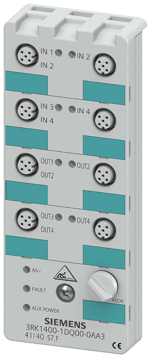 This is - Digital I/O Module 152 x 60 x 29 mm Voltage Digital Zelio Logic 31.6 V dc AS-I manufactured by Siemens. The manufacturer part number is 3RK1400-1DQ00-0AA3. Additionally, the product is supplied with 4 outputs. It carries 4 a output current. The product consists of 4 inputs. The product as-i k60, is a highly preferred choice for users. It is a type of digital i/o module accessory. Furthermore, it has adigital output. It features as-interface range. It carries voltage input type. The product is highly suitable for field work. The given dimensions of the product include 152 x 60 x 29 mm.
