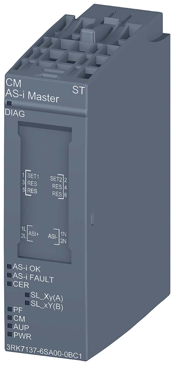 This is - Communication Module for use with SIMATIC ET 200SP 69.2 x 20 x 53.6 mm CM AS-i Master ST manufactured by Siemens. The manufacturer part number is 3RK7137-6SA00-0BC1. Additionally, the product is supplied with 496 outputs. The product is available in din rail configuration. The product consists of 496 inputs. The product as-i, is a highly preferred choice for users. It is a type of communication module accessory. Furthermore, it has aanalogue, digital output. It features cm as-i master st range. It carries analog, digital input type. The product is highly suitable for simatic et 200sp. It has a maximum operating temperature of +70°c. The given dimensions of the product include 73.2 x 58 x 20 mm.