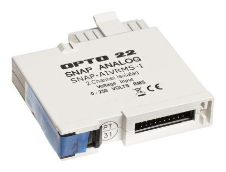 This is SNAP PLC I/O Module 2 x I/O 0 → 250 Vrms ac/dc 82.55 x 18.29 x 90.17 mm manufactured by Opto 22. The manufacturer part number is SNAP-AIVRMS-I. The product has a snap manufacturer series. The given dimensions of the product include 82.55 x 18.29 x 90.17 mm. The product is available in snap-in configuration. Applications Information involves communication. The product consists of 2 inputs. It has a/an analogue input type module . 2 is the I/O value of the product. Its accurate length is 82.55mm. Its voltage is of 0 → 250 vrms ac/dc category . Moreover, it has a backplane connection to host . Furthermore, the product is 18.29mm wide. The product comes in 90.17mm depth. It has about 200ma input current . It carries rms ac voltage, rms dc voltage input type. The product is highly suitable for snap pac system. The product also provides special features, such as channel-to-channel isolation, out-of-range indication. It has a maximum operating temperature of +70°c. Whereas, the minimum operating temperature of the product is -20°c. Features 5 v dc supply voltage.