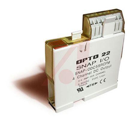 This is SNAP PLC I/O Module 4 x I/O 3 A 5 → 60 V dc 82.55 x 18.29 x 90.17 mm manufactured by Opto 22. The manufacturer part number is SNAP-ODC5SRCFM. Additionally, the product is supplied with 4 outputs. The given dimensions of the product include 82.55 x 18.29 x 90.17 mm. The product is available in snap-in configuration. Furthermore, the product is 18.29mm wide. The product has a snap manufacturer series. It has a/an digital dc output type module . 4 is the I/O value of the product. Its accurate length is 82.55mm. Furthermore, it has adigital dc voltage output. Moreover, it has a backplane connection to host . Applications Information involves communication. The product comes in 90.17mm depth. It has about 50ma input current . Whereas, the minimum operating temperature of the product is -20°c. Its voltage is of 5 → 60 v dc category . The product is highly suitable for snap pac system. The product also provides special features, such as channel-specific leds. It has a maximum operating temperature of +70°c. It carries 3 a output current. Features 5 v dc supply voltage.