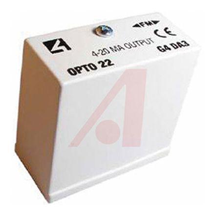 This is G4 PLC I/O Module 4 → 20 mA manufactured by Opto 22. The manufacturer part number is G4DA3. It carries 4 → 20 ma output current. The product is available in pcb mount configuration. It has a/an digital-to-current conversion type module . Moreover, it has a circuit board connection to host . Furthermore, it has aanalogue current output. Applications Information involves communication. Features 15 → 48 v supply voltage. It carries dc digital input type. It has a maximum operating temperature of 70°c. Whereas, the minimum operating temperature of the product is -30°c. The product has a g4 manufacturer series.