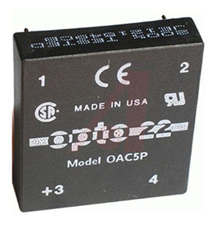 This is PLC I/O Module 1 x I/O 3 A 12 → 140 V ac 35.81 x 38.35 x 9.4 mm manufactured by Opto 22. The manufacturer part number is OAC5P. Additionally, the product is supplied with 1 outputs. The given dimensions of the product include 35.81 x 38.35 x 9.4 mm. The product is available in pcb mount configuration. Furthermore, the product is 38.35mm wide. The product consists of 1 inputs. It has a/an ac output type module . Its accurate length is 35.81mm. Furthermore, it has aac voltage output. Moreover, it has a circuit board connection to host . Applications Information involves heaters, indicators, lamps, motor starters, relays, solenoids. The product comes in 9.4mm depth. It has about 12ma input current . Whereas, the minimum operating temperature of the product is -30°c. Its voltage is of 12 → 140 v ac category . 1 is the I/O value of the product. The product also provides special features, such as ac output module has zero voltage turn-on, zero current turn-off. It has a maximum operating temperature of 70°c. It carries 3 a output current. Features 5 v dc supply voltage.