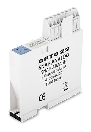 This is SNAP PLC I/O Module 2 x I/O 82.55 x 18.29 x 90.17 mm manufactured by Opto 22. The manufacturer part number is SNAP-AIMA-IH. The given dimensions of the product include 82.55 x 18.29 x 90.17 mm. The product is available in snap-in configuration. Applications Information involves communication. The product consists of 2 inputs. It has a/an analogue input type module . 2 is the I/O value of the product. Its accurate length is 82.55mm. The product has a snap manufacturer series. Moreover, it has a backplane connection to host . Furthermore, the product is 18.29mm wide. The product comes in 90.17mm depth. It has about 150ma input current . It carries analogue current input type. The product is highly suitable for snap pac system. The product also provides special features, such as channel-to-channel isolation, convenient pluggable wiring, rugged packaging. It has a maximum operating temperature of +70°c. Whereas, the minimum operating temperature of the product is -20°c. Features 5 v dc supply voltage.