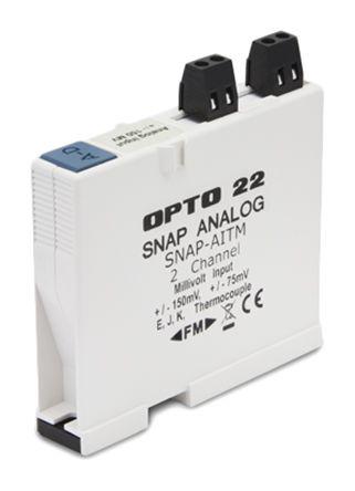 This is SNAP PLC I/O Module 2 Inputs 82.55 x 18.29 x 90.17 mm manufactured by Opto 22. The manufacturer part number is SNAP-AITM. The given dimensions of the product include 82.55 x 18.29 x 90.17 mm. The product is available in snap-in configuration. Furthermore, the product is 18.29mm wide. Whereas, the minimum operating temperature of the product is -20°c. It has a/an analogue input type module . 2 is the I/O value of the product. Its accurate length is 82.55mm. The product has a snap manufacturer series. Moreover, it has a backplane connection to host . Applications Information involves communication. The product comes in 90.17mm depth. Features 5 v dc supply voltage. It carries analogue thermocouple input type. The product is highly suitable for snap pac system. The product also provides special features, such as lifetime warranty. It has a maximum operating temperature of +70°c. It has about 170ma input current . The product consists of 2 inputs.