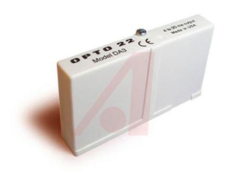 This is Digital I/O Module 1 x I/O 4 → 20 mA manufactured by Opto 22. The manufacturer part number is DA3. It carries 4 → 20 ma output current. The product is available in rack mount configuration. It has a/an analogue output type module . Moreover, it has a backplane connection to host . Furthermore, it has aanalogue current output. Applications Information involves communication. It has about 24ma input current . Whereas, the minimum operating temperature of the product is 0°c. 1 is the I/O value of the product. The product also provides special features, such as the current output modules provide a single channel of optically-isolated digital-to-current conversion. It has a maximum operating temperature of +70°c. Features ±15 v dc, 5 v dc supply voltage.