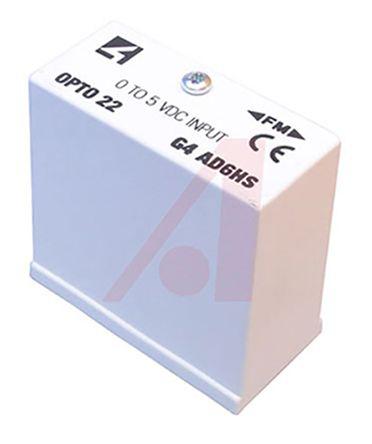 This is G4 PLC I/O Module 0 → 5 V dc manufactured by Opto 22. The manufacturer part number is G4AD6HS. Whereas, the minimum operating temperature of the product is -30°c. The product is available in pcb mount configuration. It has a/an voltage-to-digital conversion type module . Moreover, it has a circuit board connection to host . Furthermore, it has adigital output. Applications Information involves communication. Its voltage is of 0 → 5 v dc category . It carries analogue voltage input type. The product also provides special features, such as the modules offer wide nominal input range and special over and under range capabilities. It has a maximum operating temperature of +70°c. The product has a g4 manufacturer series.