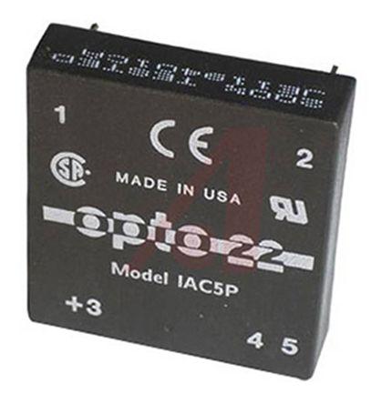 This is PLC I/O Module 1 x I/O 50 mA 90 → 140 V ac/dc 35.81 x 38.35 x 9.4 mm manufactured by Opto 22. The manufacturer part number is IAC5P. The given dimensions of the product include 35.81 x 38.35 x 9.4 mm. The product is available in pcb mount configuration. Applications Information involves limit switches, photoelectronic switches, proximity switches, push button, selector switches, ttl-compatible devices. Whereas, the minimum operating temperature of the product is -30°c. It has a/an ac input type module . Its accurate length is 35.81mm. Its voltage is of 90 → 140 v ac/dc category . Moreover, it has a circuit board connection to host . Furthermore, the product is 38.35mm wide. The product comes in 9.4mm depth. It has about 11ma input current . It carries ac voltage input type. 1 is the I/O value of the product. The product also provides special features, such as ac output module has zero voltage turn-on, zero current turn-off. It has a maximum operating temperature of 70°c. It carries 50 ma output current. Features 5 v dc supply voltage.
