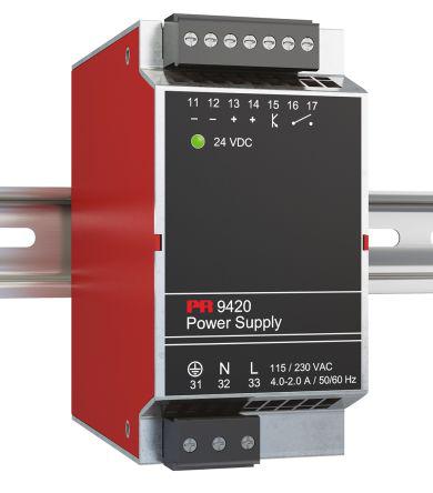 This is PLC Power Supply 9400 Series 187 → 264 V ac 85 → 132 V ac 24V dc 5 A 120W manufactured by PR Electronics. The manufacturer part number is 9420. With 24v dc user power output voltage . The given dimensions of the product include 110 x 54 x 114 mm. It carries 5 a output current. Its accurate length is 110mm. It has a standard 85 → 132 v ac, 187 → 264 v ac of line voltage . Furthermore, the product is 54mm wide. The product comes in 114mm depth. Its output power is 120w. The product has a 9400 manufacturer series. Whereas, the minimum operating temperature of the product is -10°c. It has a maximum operating temperature of +60°c.