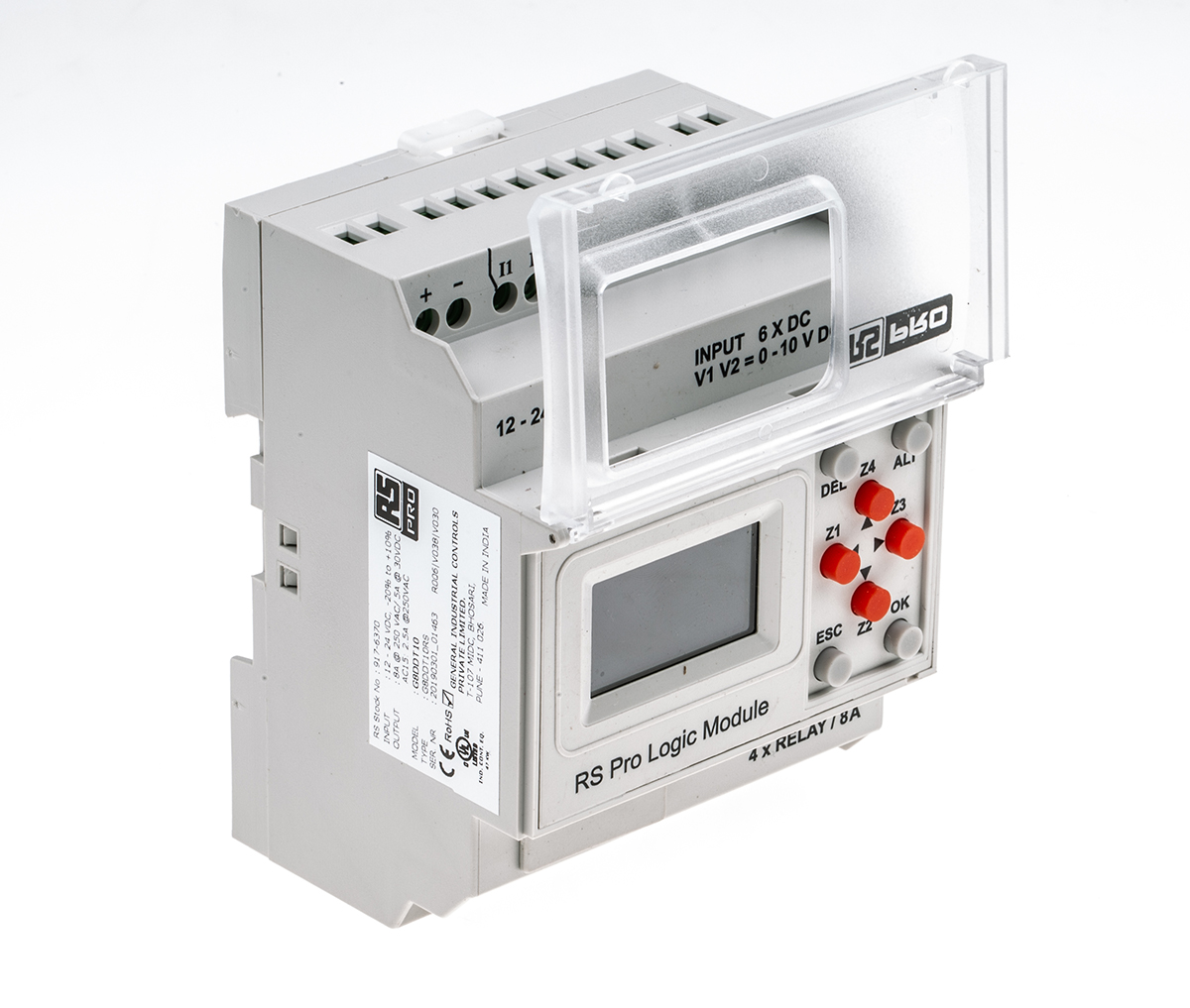 This is Logic Module With Display ModBus Serial Communication 2 (Analogue) 6 (Digital) x Input 4 x Output manufactured by RS Pro. The manufacturer part number is 917-6370. It has about 250 lines program capacity . Additionally, the product is supplied with 4 outputs. The given dimensions of the product include 72 x 90 x 65 mm. The product is available in din rail configuration. It uses ladder programming programming language . Whereas, the minimum operating temperature of the product is -10°c. Its accurate length is 90mm. Furthermore, it has adigital, relay output. It has a/an serial type communication port . Furthermore, the product is 72mm wide. The product comes in 65mm depth. Features 12 → 24 v dc supply voltage. It carries analogue, digital input type. The product includes 1 communication ports . The product consists of 8 inputs. It is designed with a typical modbus type network . Additionally, it is designed with a/an computer programming interface . It has a maximum operating temperature of +55°c. It carries 8 a output current. Display included yes . The product complies with all safety standards, such as ce, culus listed, iec 60068-2-1, iec 60068-2-2, iec 60068-2-27, iec 60068-2-6, iec 61000-3-2, iec 61000-4-11, iec 61000-4-2, iec 61000-4-29, iec 61000-4-4, iec 61000-4-5, iec 61000-4-6.