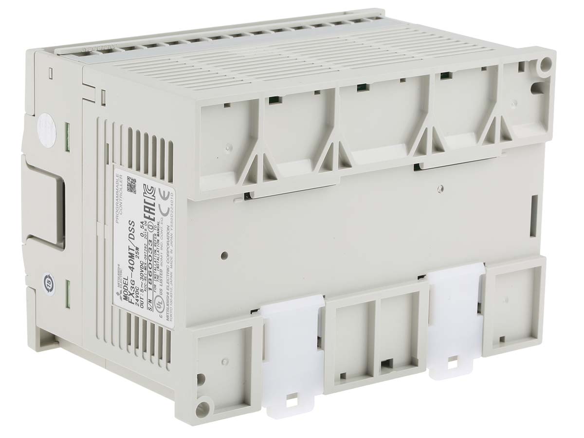This is FX3G Series Logic Module 12 → 24 V dc 24 x Input 16 x Output Without Display manufactured by Mitsubishi. The manufacturer part number is FX3G-40MT-DSS. It has about 32000 steps program capacity . Additionally, the product is supplied with 16 outputs. The given dimensions of the product include 130 x 90 x 86 mm. The product is available in din rail configuration. Whereas, the minimum operating temperature of the product is 0°c. Its accurate length is 130mm. Furthermore, it has atransistor output. The product has a fx3g manufacturer series. Furthermore, the product is 90mm wide. The product comes in 86mm depth. Features 12 → 24 v dc supply voltage. It carries sink, source input type. It uses ladder logic programming language . Additionally, it is designed with a/an computer, hmi programming interface . It has a maximum operating temperature of +50°c. It carries 800 ma output current. The product consists of 24 inputs.