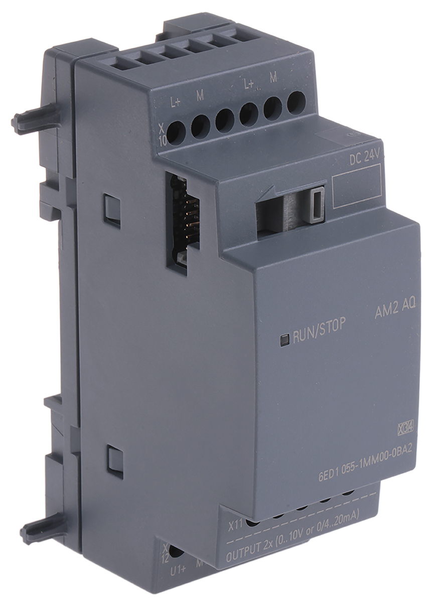 This is LOGO! 8 Expansion Module 24 V dc 2 x Output Without Display manufactured by Siemens. The manufacturer part number is 6ED1055-1MM00-0BA2. Additionally, the product is supplied with 2 outputs. The given dimensions of the product include 90 x 35.5 x 58 mm. The product is available in din rail configuration. Its accurate length is 90mm. Furthermore, it has aanalogue output. The product has a logo! manufacturer series. The product is created with 2 analogue outputs . Furthermore, the product is 35.5mm wide. The product comes in 58mm depth. Features 24 v dc supply voltage. Whereas, the minimum operating temperature of the product is 0°c. The product is highly suitable for logo! 8, logo! 8.2. Additionally, it is designed with a/an computer programming interface . It has a maximum operating temperature of +55°c. It carries 300 ma output current. The product complies with all safety standards, such as ce, csa, fm.