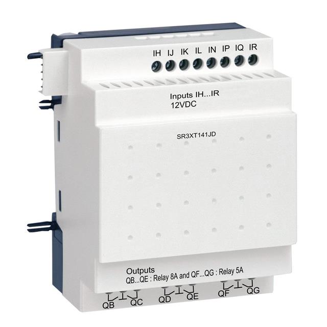 This is Zelio Logic 2 Logic Control Without Display 8 x Input 6 x Output Input/Output manufactured by Schneider Electric. The manufacturer part number is SR3XT141JD. Additionally, the product is supplied with 6 outputs. Better World Verification Options - green premium. Is it a better world product? yes. The given dimensions of the product include 107.6 x 72 x 59.5 mm. It carries discrete input type. Its accurate length is 107.6mm. Furthermore, it has arelay output. The product has a zelio logic manufacturer series. Furthermore, the product is 72mm wide. The product comes in 59.5mm depth. Features 12 v dc supply voltage. The product is highly suitable for zelio logic modules. The product is available in din rail configuration. The product consists of 8 inputs. The product is rohs3 compliant. Number and outputs type - 6 - relay. Moreover, it has screw terminal terminal style. The product has -20°c ~ 55°c operating temperature range. It is approved by csa, c-tick, gl, gost, ul. It comes in input, output (i/o) module configuration. The schneider electric's product offers user-desired applications. Its typical moisture sensitivity level is 1 (unlimited). It has a long 5 weeks standard lead time. It is IP rated with ip20, ip40. The typical product's weight is 0.490 lb (222.26 g). Inputs and Type of Inputs - 8 - digital. The product zelio logic, is a highly preferred choice for users. In addition, box is the available packaging type of the product. It has optimum voltage supply of 12vdc. The product is suitable for use with zelio logic series.