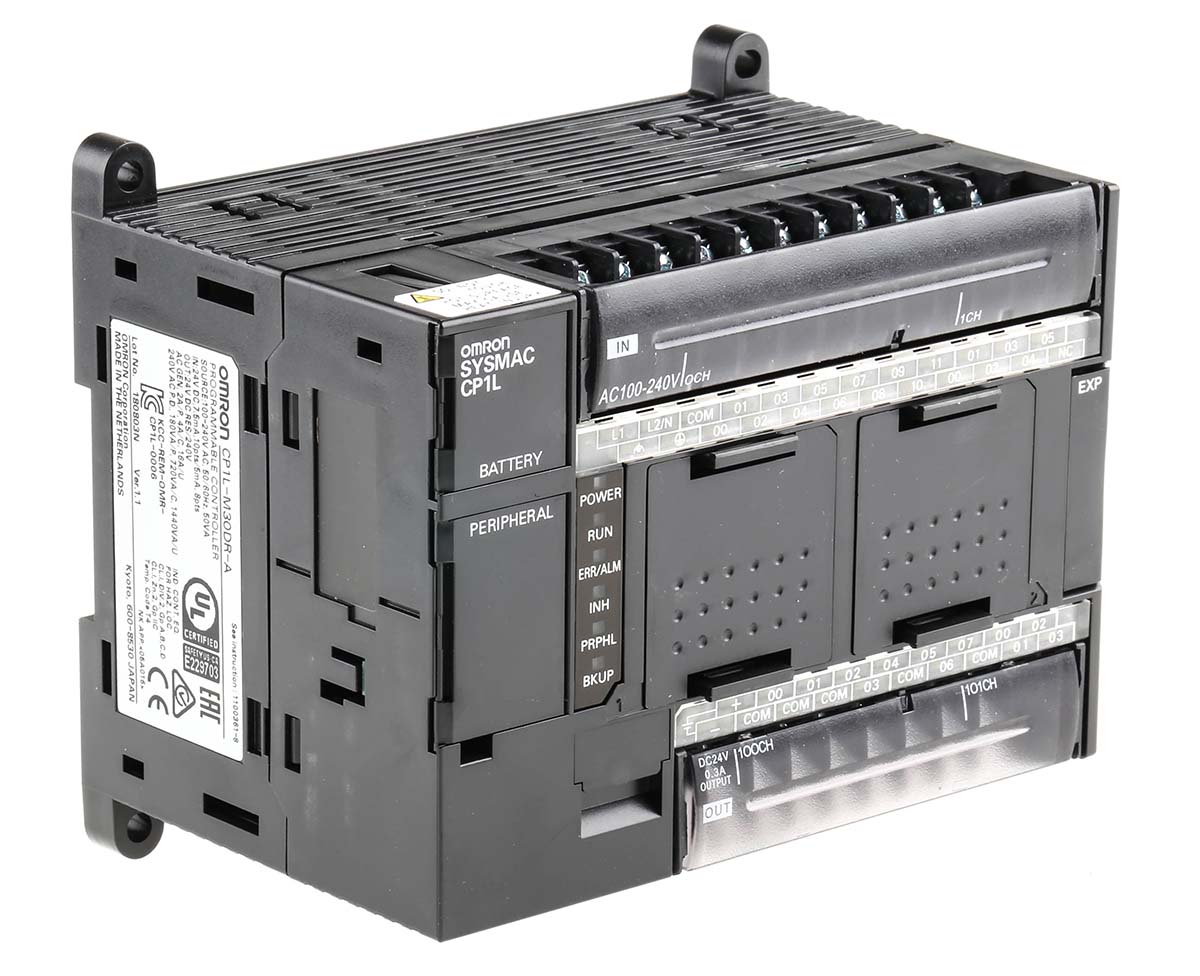 This is CP1L PLC CPU USB Networking Computer Interface 10000 Steps Program Capacity 18 (DC) Inputs 12 (Relay) Outputs manufactured by Omron. The manufacturer part number is CP1L-M30DR-A. It has about 10000 steps program capacity . The given dimensions of the product include 130 x 110 x 85 mm. Its voltage is of 85 → 264 v ac category . It has a/an usb 1.1 type communication port . Furthermore, the product is 110mm wide. It carries dc input type. It has a robust 10000 (program memory) steps, 32000 (data memory) words memory. The product is highly suitable for sysmac cp1l series. It is designed with a typical usb type network . The product consists of 18 (dc) inputs. Furthermore, it has arelay output. It has a maximum operating temperature of +55°c. It uses ladder logic programming language . Additionally, the product is supplied with 12 (relay) outputs. Whereas, the minimum operating temperature of the product is 0°c. Its accurate length is 130mm. The product has a cp1l manufacturer series. The product includes 1 communication ports . Additionally, it is designed with a/an computer programming interface . It carries 2 a output current. The product is available in din rail configuration. The product comes in 85mm depth. It contains a backup battery yes .