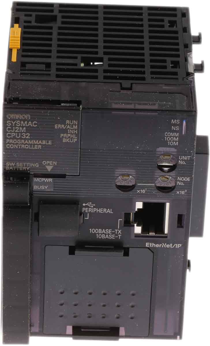 This is CJ2M PLC CPU Ethernet Networking 160000 Words Program Capacity 5 → 24 V dc manufactured by Omron. The manufacturer part number is CJ2MCPU32. It has about 30 k steps program capacity . The given dimensions of the product include 84.5 x 62 x 90 mm. It carries dc input type. The product includes 72 communication ports . Its accurate length is 62mm. Its voltage is of 5 → 24 v dc category . It has a/an ethernet/ip, ethernet tcp/ip, usb type communication port . Furthermore, the product is 62mm wide. The product comes in 84.5mm depth. Display included yes . It has a robust 64000 words memory. The product is highly suitable for cj2 series. The product is available in panel mount configuration. It is designed with a typical ethernet type network . It uses instruction lists, ladder logic, sequential function chart, structured text programming language . It has a maximum operating temperature of +55°c. Whereas, the minimum operating temperature of the product is 0°c. The product has a cj2m manufacturer series.