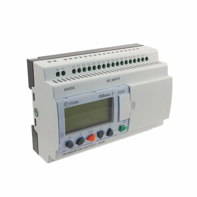 This is Millenium 3 Logic Module 24 V dc 16 x Input 10 x Output With Display manufactured by Crouzet. The manufacturer part number is 88970162. Additionally, the product is supplied with 10 outputs. Display included yes . The given dimensions of the product include 124.6 x 100 x 59.5 mm. It carries analogue, digital input type. Whereas, the minimum operating temperature of the product is -20°c. Its accurate length is 124.6mm. Furthermore, it has atransistor output. The product has a millenium 3 manufacturer series. It has a/an serial, usb type communication port . Furthermore, the product is 100mm wide. The product comes in 59.5mm depth. Features 24 v dc supply voltage. The product includes 2 communication ports . The product is available in din rail configuration. It uses fbd, ladder logic programming language . It has a maximum operating temperature of +55°c. It carries 500 ma output current. The product consists of 16 inputs. It is assigned with possible HTSUS value of 8537.10.9170. The product is rohs compliant. Number and outputs type - 10 - pwm (4), solid state (6). The product has -20°c ~ 55°c operating temperature range. It holds a typical memory size of 368 bits/200 words. It is approved by ce, csa, gl, ul. The product is available in chassis mount, din rail configuration. Features 18, 18, 18, 18 characters per row. In addition, it is reach unaffected. The crouzet's product offers user-desired applications. Its typical moisture sensitivity level is 1 (unlimited). It has a long 3 weeks standard lead time. Typical software is m3 soft. It features a remarkable lcd - black characters, green backlight display. It is IP rated with ip40. The splendid features of the product include battery backup (lithium). Inputs and Type of Inputs - 16 - digital (10), analog/digital (6). The product millenium 3, xd26, is a highly preferred choice for users. In addition, box is the available packaging type of the product. It has optimum voltage supply of 24vdc. Expandable Options - expandable. The product is designated with the ear99 code number.