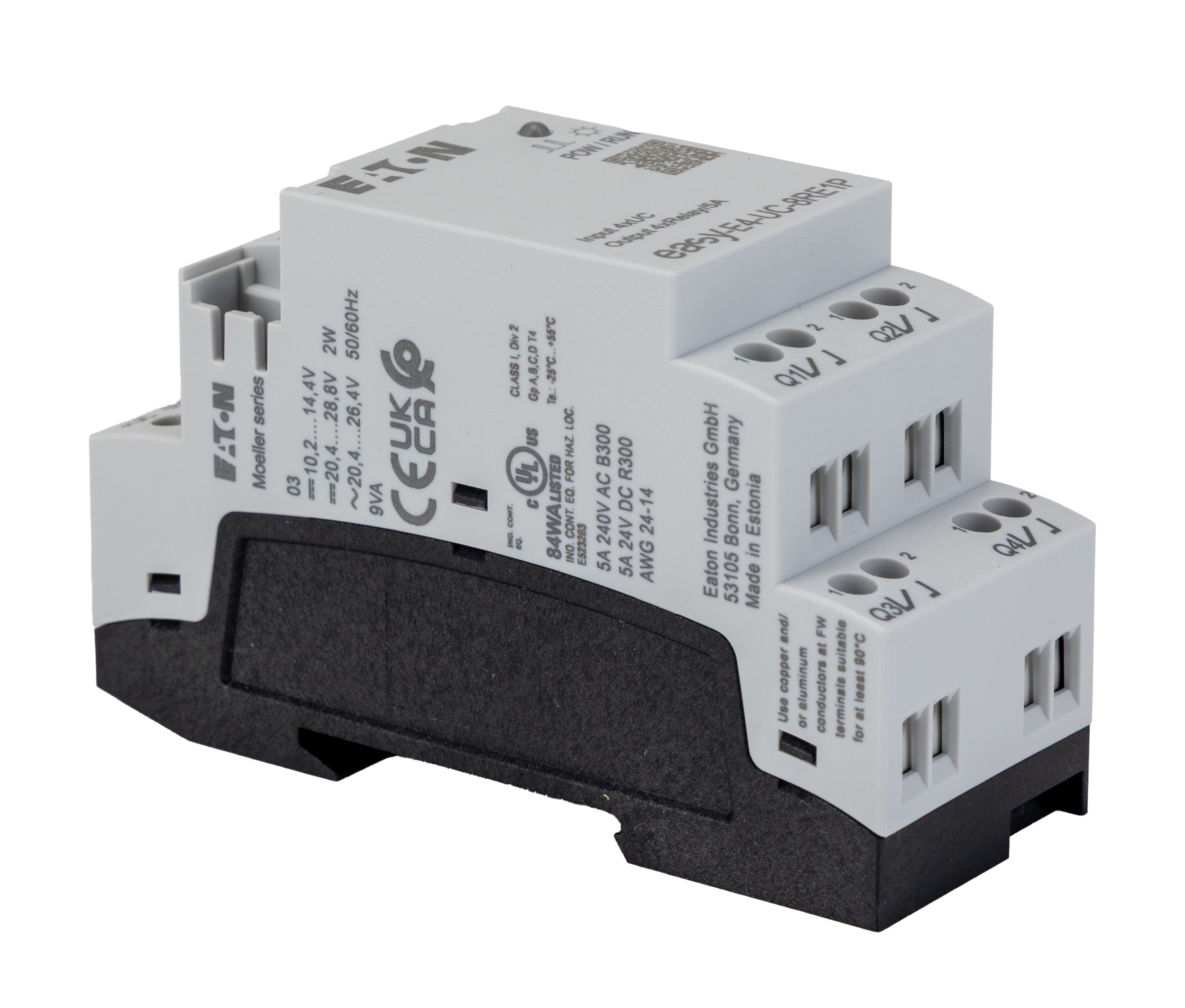 This is Easy Control Relay - 4 Inputs 4 Outputs Relay For Use With Easy E4 Ethernet Networking manufactured by Eaton. The manufacturer part number is 197510 EASY-E4-UC-8RE1P. The given dimensions of the product include 58 x 90 x 36 mm. Its voltage is of 24 v dc category . Furthermore, the product is 36mm wide. Features 264 v supply voltage. It carries digital input type. It is designed with a typical ethernet type network . The product consists of 4 inputs. The product complies with all safety standards, such as ce. Furthermore, it has arelay output. The product is created with 0 analogue outputs . It has a maximum operating temperature of +55°c. Additionally, the product is supplied with 4 outputs. It has 4 digital outputs . It contains 4 digital inputs . Its accurate length is 90mm. The product has a easye4 manufacturer series. The product is available in wall mount configuration. The product comes in 58mm depth. It has 0 analogue inputs . Whereas, the minimum operating temperature of the product is -25°c. Display included no .