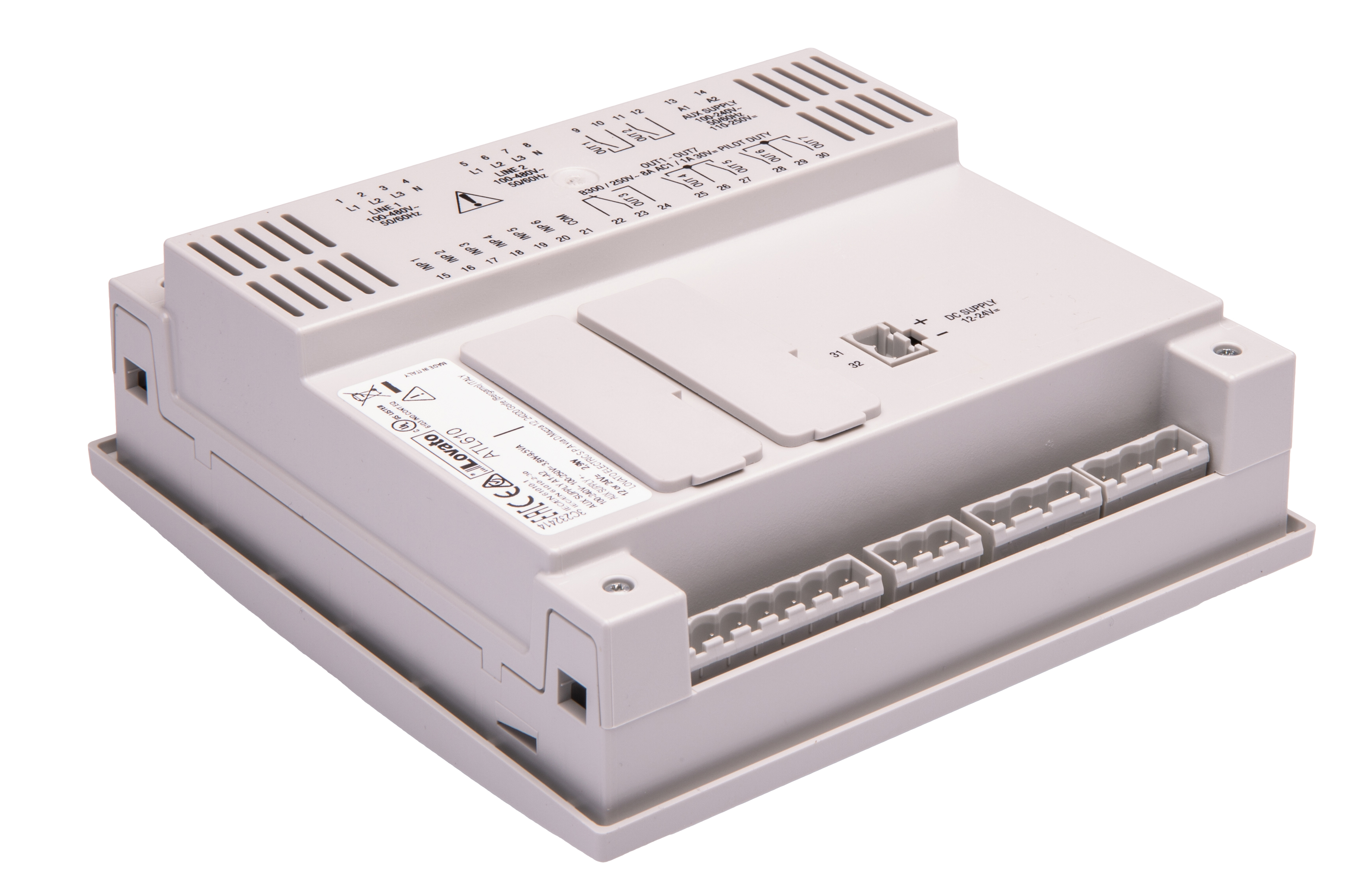 This is ATL Controller - 6 Inputs 7 Outputs Relay For Use With 2 Power Sources With Three Phase Control ModBus manufactured by Lovato. The manufacturer part number is ATL610. Additionally, the product is supplied with 7 outputs. The product consists of 6 inputs. Its voltage is of 7.5-33 v dc category . Furthermore, it has arelay output. It contains 6 digital inputs . It has 0 analogue inputs . Features 110 → 240 v ac supply voltage. It carries digital input type. The product is highly suitable for 2 power sources with three phase control. It is designed with a typical modbus type network . Additionally, it is designed with a/an usb programming interface . The product has a atl manufacturer series.