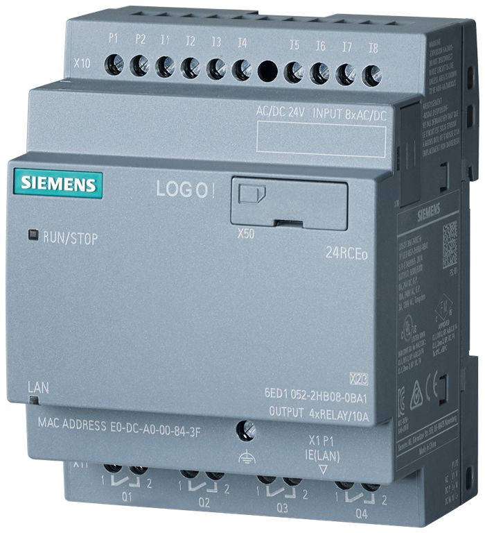 This is LOGO! Series Logic Module for Use with LOGO! 8.4 24 V dc Supply Relay Output 8-Input Digital Input manufactured by Siemens. The manufacturer part number is 6ED1052-2HB08-0BA2. Additionally, the product is supplied with 4 outputs. Is it a better world product? yes. It carries 10 a output current. The product is available in din rail configuration. It contains 8 digital inputs . The product includes 1 communication ports . Furthermore, it has arelay output. The product has a logo! manufacturer series. Furthermore, the product is 71.5mm wide. Its accurate length is 90mm. Features 24 v dc supply voltage. It carries digital input type. Its voltage is of 24 v dc category . The product is highly suitable for logo! 8.4. It is designed with a typical ethernet type network . Additionally, it is designed with a/an ethernet programming interface . It has a maximum operating temperature of +55°c. Whereas, the minimum operating temperature of the product is -20°c. It has 4 digital outputs . The product consists of 8 inputs.