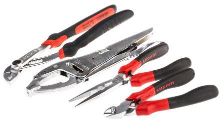 This is 3 pieces Plier Set manufactured by Facom. The manufacturer part number is MODM.CPE1. Moreover, it has sheathed cpe plier (x3); one pair of lock grip plier set contents . The product consists of 3 pieces.