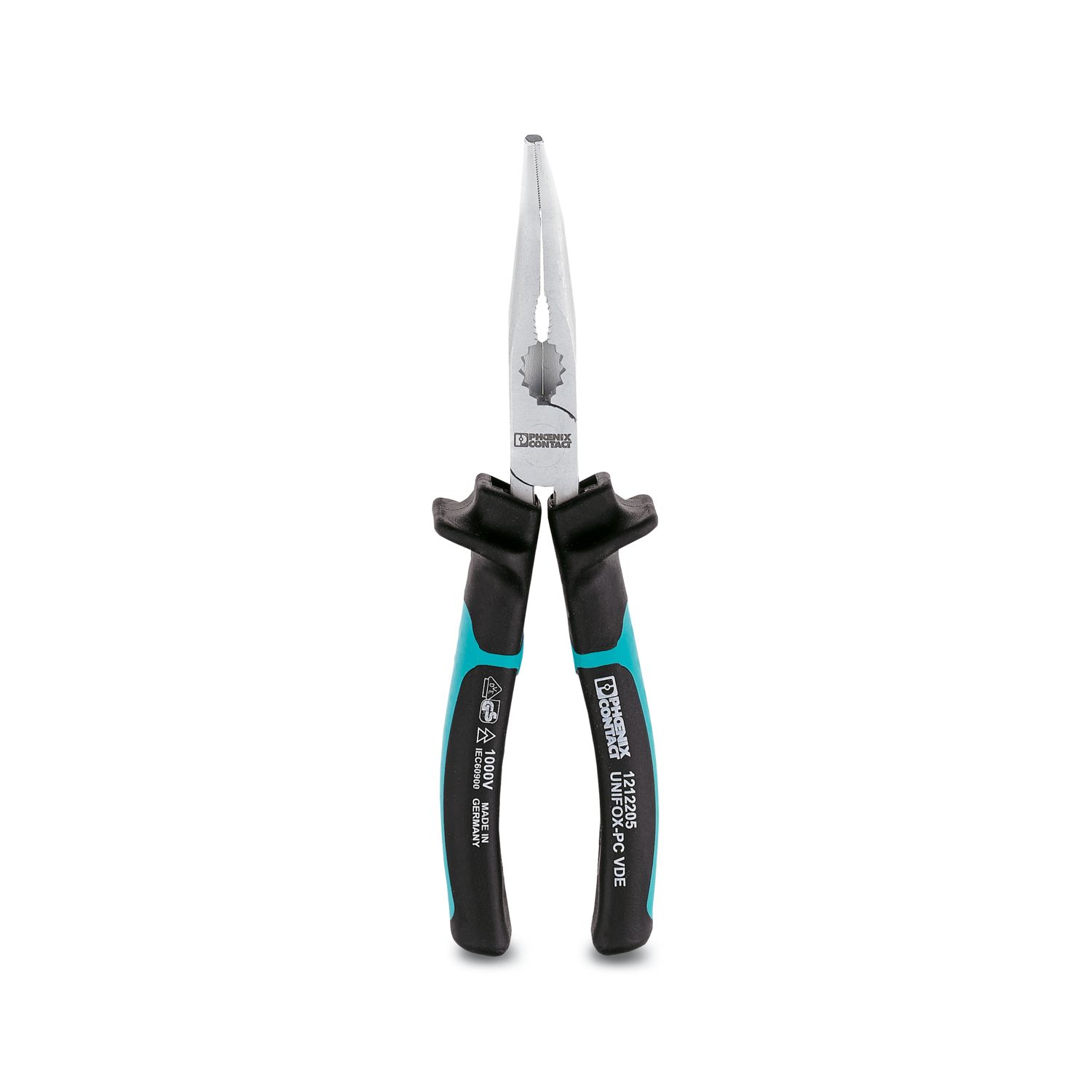 This is manufactured by Phoenix Contact. The manufacturer part number is 1212205. VDE/1000V Approval Options - yes. The product consists of 1 pieces. It has a model number 1212205. Moreover, it has a plier of nose pliers type . It has an overall length of 170 mm. It is assigned with possible HTSUS value of 8203.20.6030. The product is rohs compliant. The built-in exquisite tip is a needle nose tip. This is basically a useful and handy electronics. It is shipped in bulk package . Its typical moisture sensitivity level is 1 (unlimited). Its accurate length is 8.07" (205.0mm). It has a long 12 weeks standard lead time. The splendid features of the product include ergonomic, insulated to 1000v, soft grips. The typical product's weight is 0.441 lb (200.03 g). The product unifox, is a highly preferred choice for users. The tip is designed with a angled 45° shape. The product is designated with the ear99 code number.