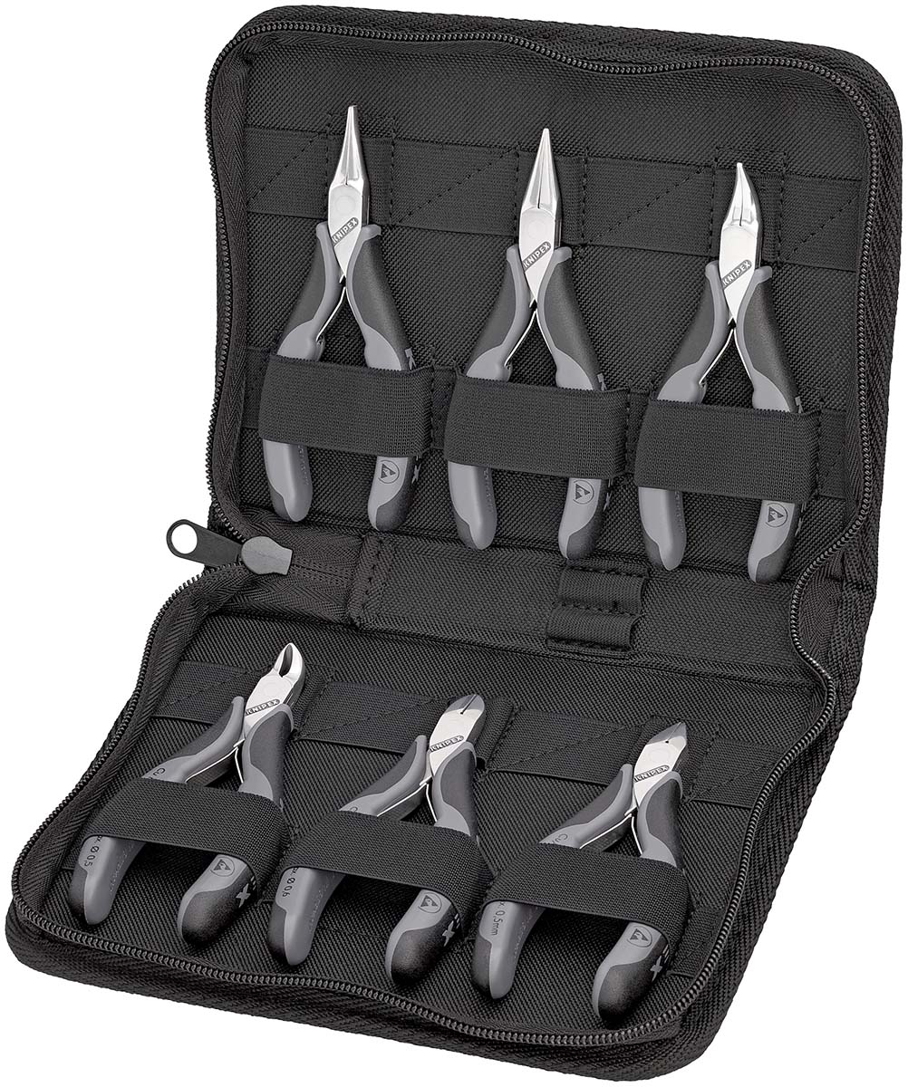 This is 6 pieces Steel Plier Set manufactured by Knipex. The manufacturer part number is 00 20 17. VDE/1000V Approval Options - no. The product is made from highly stable and reliable chrome vanadium steel. It has an overall length of 250 mm. ESD Safety - yes. It is height safe no . The product consists of 6 pieces.
