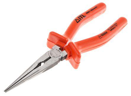 This is 220 mm Long Nose Pliers Chrome Vanadium Steel manufactured by RS Pro. The manufacturer part number is 911-1058. Its typical cutting capacity is 2.8 mm . The product has an integral straight tip. The product is made from highly stable and reliable chrome vanadium steel. Moreover, it has a plier of long nose pliers type . VDE/1000V Approval Options - yes. It has an overall length of 220 mm.