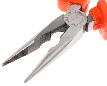 This is 200 mm Long Nose Pliers Chrome Vanadium Steel manufactured by RS Pro. The manufacturer part number is 911-1049. Its typical cutting capacity is 2.5 mm . The product has an integral straight tip. The product is made from highly stable and reliable chrome vanadium steel. Moreover, it has a plier of long nose pliers type . VDE/1000V Approval Options - yes. It has an overall length of 200 mm.