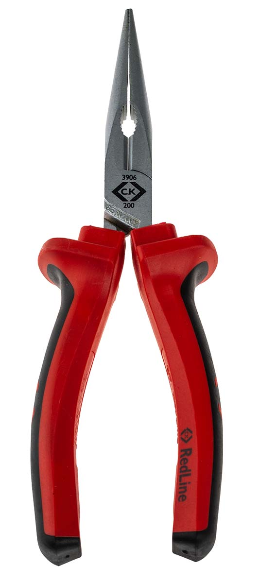 This is 200 mm Chrome Vanadium Steel Long Nose Pliers with 75mm Jaw Length manufactured by CK. The manufacturer part number is RS_104-4663. It jaw is about 75mm in length . The product has an integral straight tip. The product is made from highly stable and reliable chrome vanadium steel. Moreover, it has a plier of long nose pliers type . It has an overall length of 200 mm.