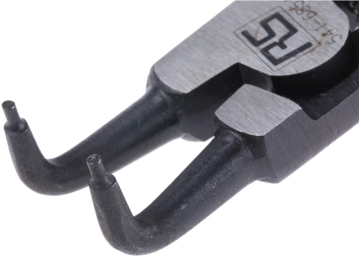 This is 165 mm Chrome Molybdenum Steel Circlip Pliers with Bent Tip External Range 19 → 60 mm manufactured by RS Pro. The manufacturer part number is 541-6854. The product has an integral bent tip. It has about 19 → 60 mm size circlip range . The product is made from highly stable and reliable chrome molybdenum steel. Moreover, it has a plier of circlip pliers type . It has an overall length of 165 mm.