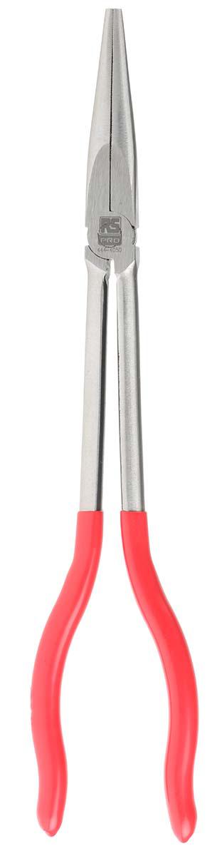 This is 279 mm Carbon Steel Long Nose Pliers with 90mm Jaw Length manufactured by RS Pro. The manufacturer part number is 444-4050. It jaw is about 90mm in length . The product has an integral straight tip. The product is made from highly stable and reliable carbon steel. Moreover, it has a plier of long nose pliers type . It has an overall length of 279 mm. In addition, Its jaw is 2.5mm in depth .