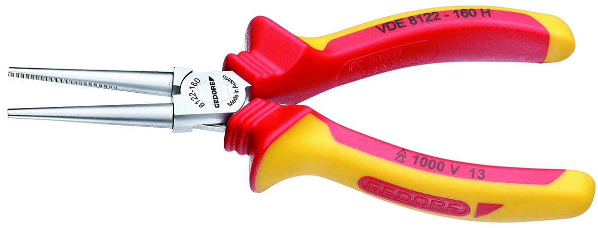 This is 160 mm Steel Round Nose Pliers Jaw Length: 48mm manufactured by Gedore. The manufacturer part number is VDE 8122-160 H. In addition, Its jaw is 8.7mm in depth . It jaw is about 48mm in length . The product is made from highly stable and reliable steel. Moreover, it has a plier of round nose pliers type . It has an overall length of 160 mm.