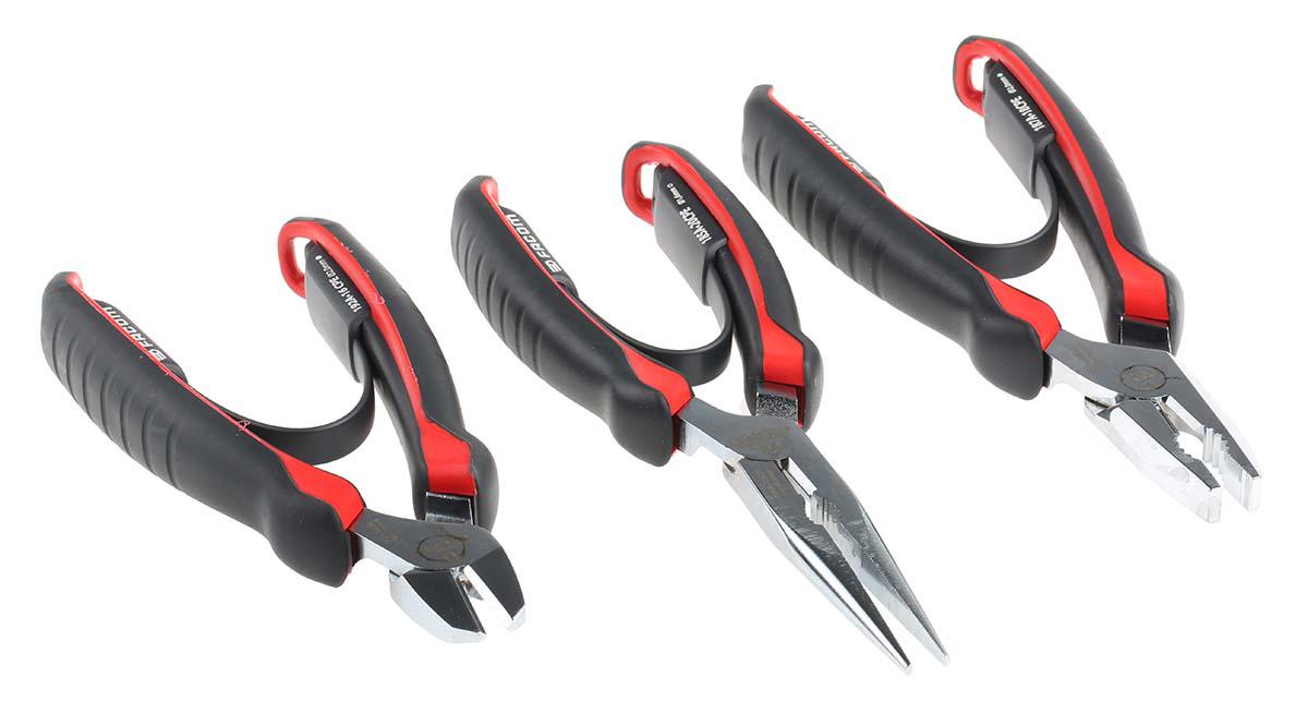 This is 3 pieces Plier Set manufactured by Facom. The manufacturer part number is MOD.CPEA0PB. The product is made from highly stable and reliable chrome molybdenum vanadium steel. The product consists of 3 pieces. It has an overall length of 150 mm.