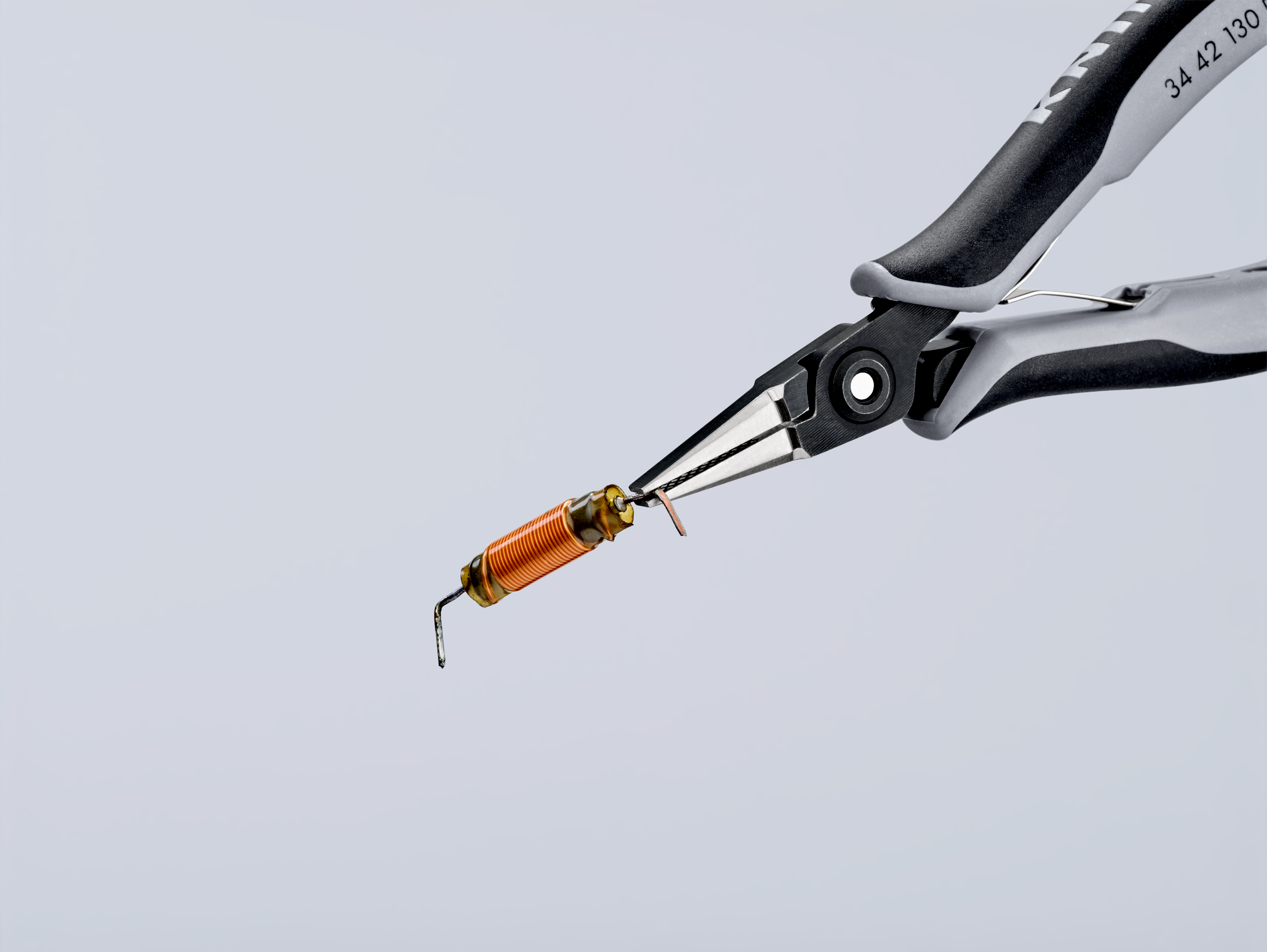 This is ESD 130 mm Chrome Vanadium Steel Flat Nose Pliers with 21.9mm Jaw manufactured by Knipex. The manufacturer part number is 34 42 130 ESD. It jaw is about 22mm in length . The product has an integral flat, straight tip. The product is made from highly stable and reliable ball bearing chrome steel. It has an overall length of 136 mm. Moreover, it has a plier of electronics pliers, round nose pliers type . VDE/1000V Approval Options - no. It has a model number 34 42. ESD Safety - yes. In addition, Its jaw is 1.4mm in depth . The product consists of 1 pieces. It is height safe no .