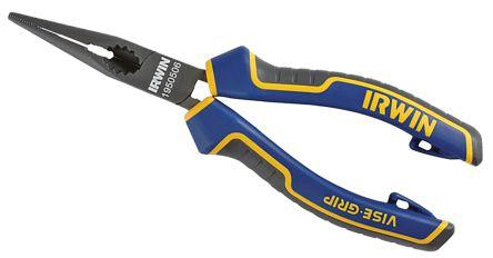 This is 150 mm Steel Long Nose Pliers with 2in Jaw Length manufactured by Irwin. The manufacturer part number is 1950506. In addition, Its jaw is 19/32in in depth . The product has an integral straight tip. The product is made from highly stable and reliable steel. It jaw is about 2.0in in length . It has an overall length of 150.0 mm.