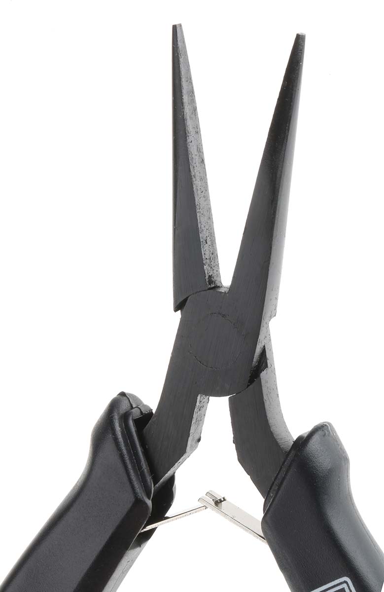 This is 120 mm High Carbon Steel Long Nose Pliers manufactured by RS Pro. The manufacturer part number is 847-3752. The product has an integral straight tip. The product is made from highly stable and reliable high carbon steel. Moreover, it has a plier of long nose pliers type . It has an overall length of 120 mm.
