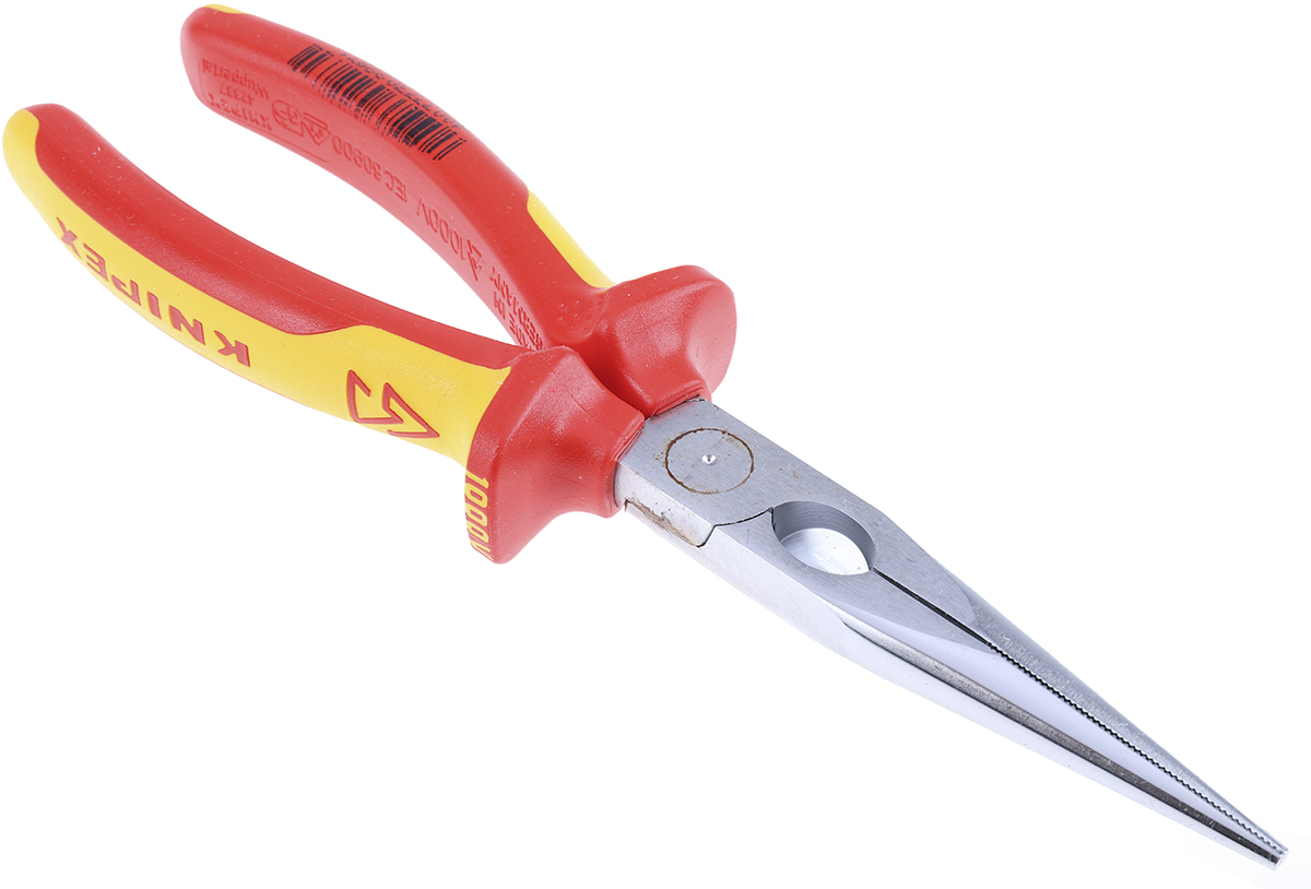 This is Cutters 200 mm Vanadium Steel manufactured by Knipex. The manufacturer part number is 26 16 200. It jaw is about 73mm in length . The product has an integral straight tip. It has a non sparking nature no . The product is made from highly stable and reliable vanadium electric steel. It has an overall length of 200 mm. Moreover, it has a plier of long nose pliers type . VDE/1000V Approval Options - yes. It has the capability of cutting soft steel wire; medium wire; hard steel wire; steel wire material . ESD Safety - no. In addition, Its jaw is 9.5mm in depth . Its typical cutting capacity is hard wire: 2.2 mm, medium hard wire: 3.2 mm . The product consists of 1 pieces. It is height safe no .