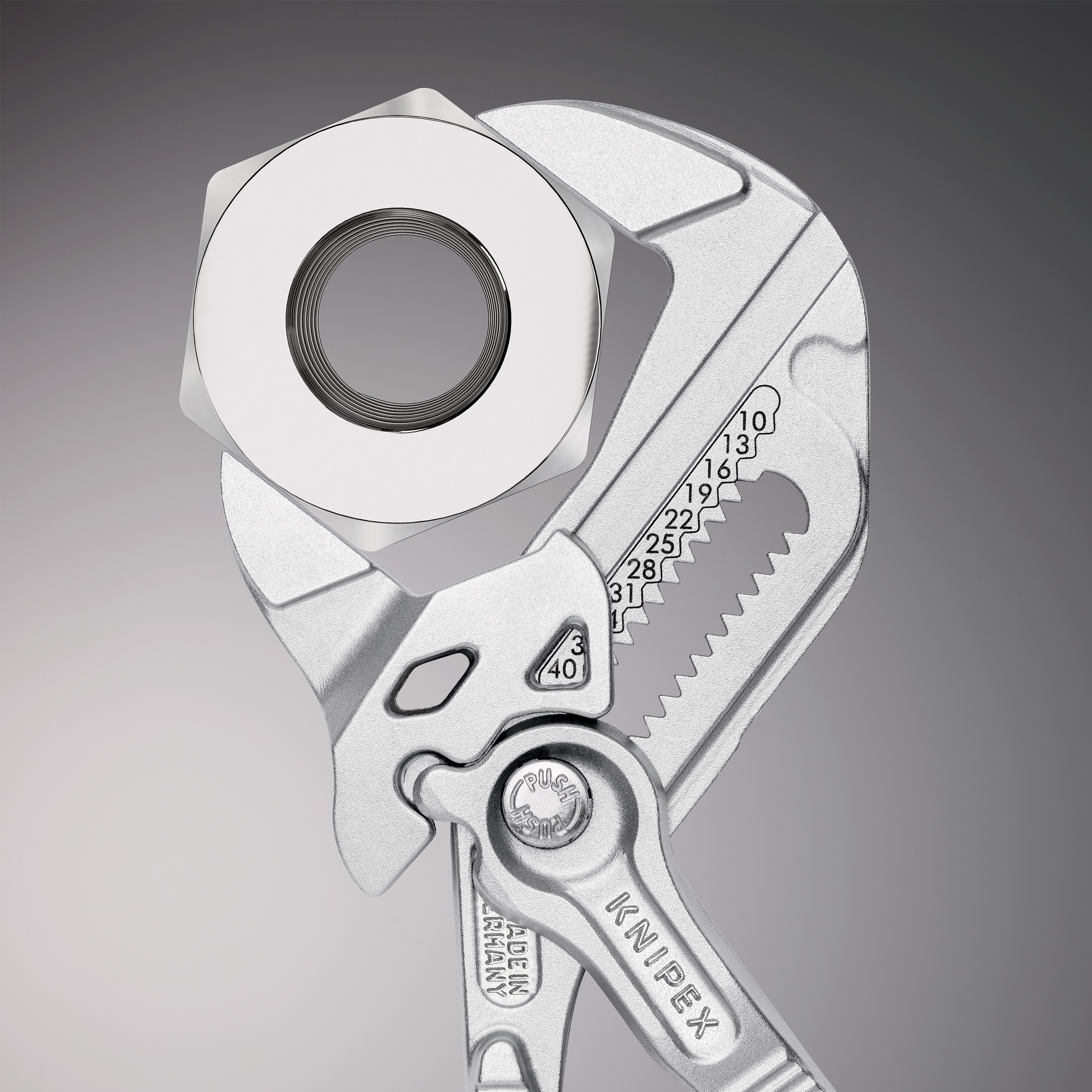 This is Plier Wrench Plier Wrench 35mm Jaw Capacity Chrome Vanadium Steel 180 mm manufactured by Knipex. The manufacturer part number is 86 03 180. VDE/1000V Approval Options - no. The product has an integral angled, bent, flat, straight tip. It has a non sparking nature no . Equipped with a 0 → 40mm jaw opening. The product is made from highly stable and reliable chrome vanadium steel. It has an overall length of 180 mm. Moreover, it has a plier of pliers wrench type . ESD Safety - no. It is height safe no . The product consists of 1 pieces.